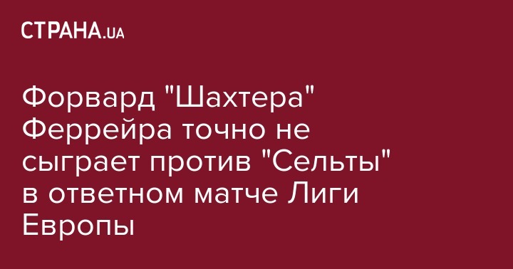 Форвард "Шахтера" Феррейра точно не сыграет против "Сельты" в ответном матче Лиги Европы