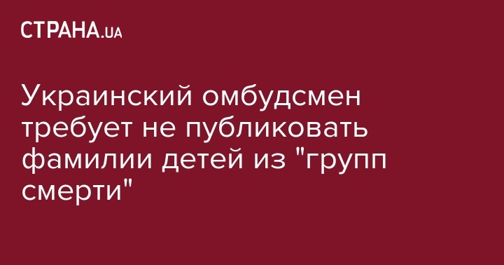 Уполномоченная Верховной Рады по правам человека Валерия Лутковская обратилась к главе Нацполиции с просьбой не публиковать имена и фамилии детей, которые состоят в так называемых "группах смерти" в соцсетях. Об этом говорится на сайте омбудсмена.
