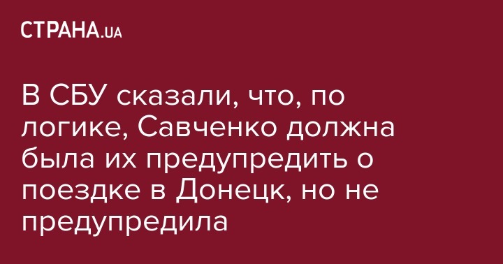 Он отметил, что о своей поездке в ОРДЛО Савченко по закону не обязана информировать СБУ, "но обычная простая человеческая логика: последнее посещение госпожой Надеждой оккупированных территорий закончилось тем, что потом вся страна ждала ее возвращения из РФ домой, то логика подсказывает, что есть какие-то аспекты безопасности, которые надо учитывать".