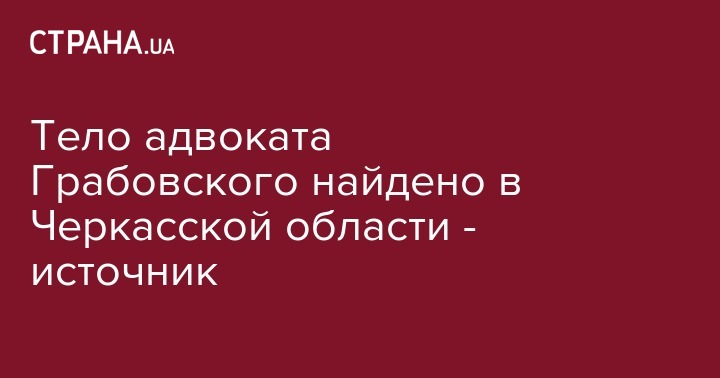 Тело адвоката Грабовского найдено в Черкасской области - источник