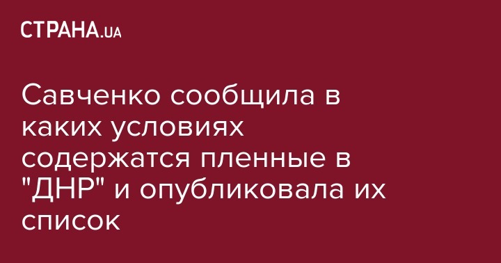 Савченко сообщила в каких условиях содержатся пленные в "ДНР" и опубликовала их список