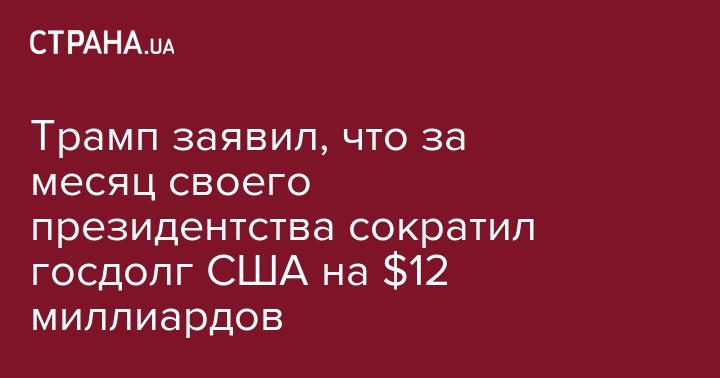 Трамп заявил, что за месяц своего президентства сократил госдолг США на $12 миллиардов