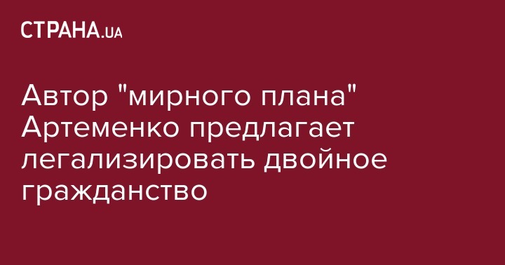 Автор "мирного плана" Артеменко предлагает легализировать двойное гражданство