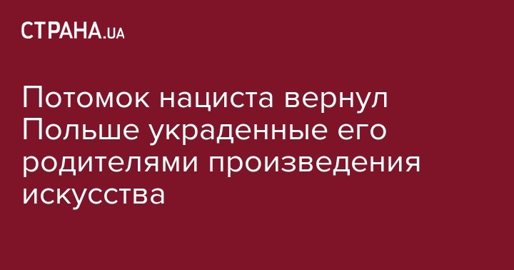 Потомок нациста вернул Польше украденные его родителями произведения искусства