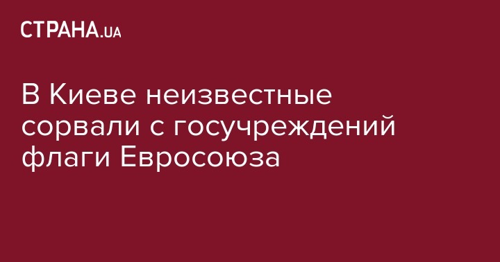В Киеве группа неизвестных сорвала со зданий государственных учреждений флаги Европейского союза. Эту акцию сняли на видео и выложили в сеть 27 февраля (точная дата проведения акции не указана).