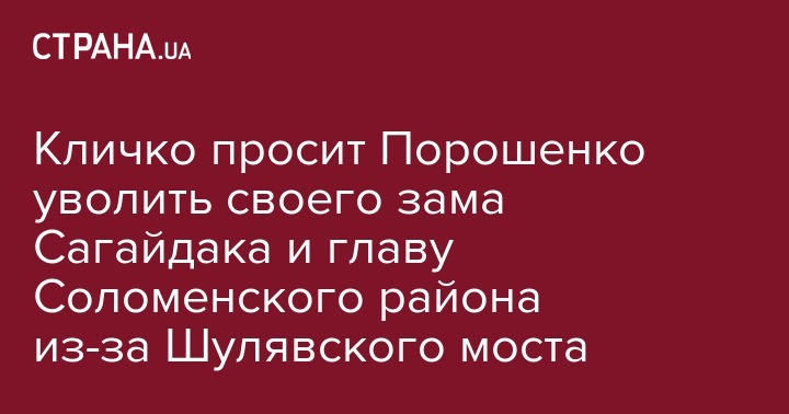 Кличко принял решение уволить заместителя главы КГГА по вопросам транспортной инфраструктуры Илью Сагайдака и главу Соломенского района Виктора Шкуро в связи с обвалом на Шулявском путепроводе.