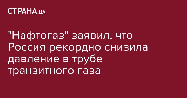 "Нафтогаз" заявил, что Россия рекордно снизила давление в трубе транзитного газа
