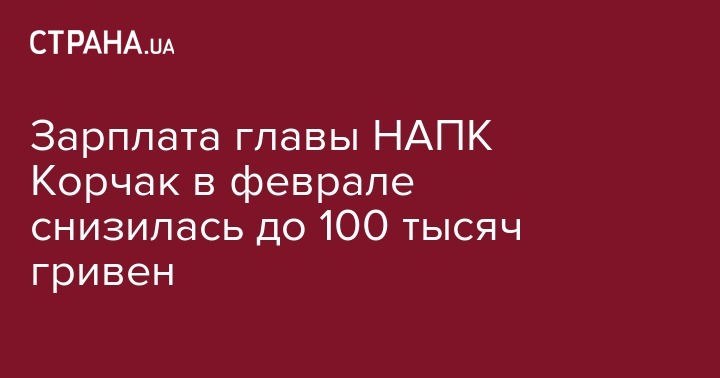 Зарплата главы НАПК Корчак в феврале снизилась до 100 тысяч гривен