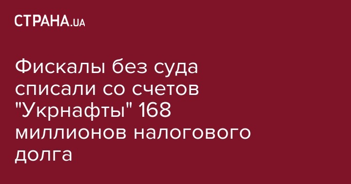 "С учетом указанного начальником Офиса крупных плательщиков принято решение о взыскании налогового долга со счетов должника ПАО "Укрнафта" №1 и выставлено на все счета должника почти 500 инкассовых поручений. Со счетов предприятия в счет погашения налогового долга списаны средства в сумме 168 млн грн", – говорится в сообщении.
