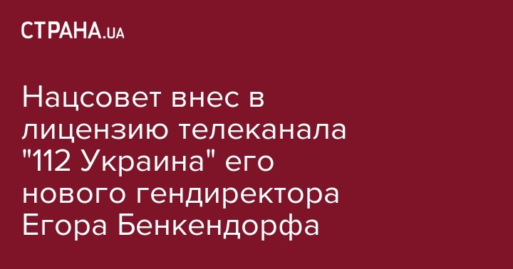 Телеканал "112 Украина" сменил состав редакционного совета и руководителя, а исполнительный орган из единоличного превратился в коллегиальный. Об этом сообщает пресс-служба Национального совета по вопросам телевидения и радиовещания, который удовлетворил ходатайство ООО "Телерадиокомпания" 112-ТВ" в Киеве (спутниковый телеканал "112 Украина") – и внес соответствующие изменения в лицензию вещателя.