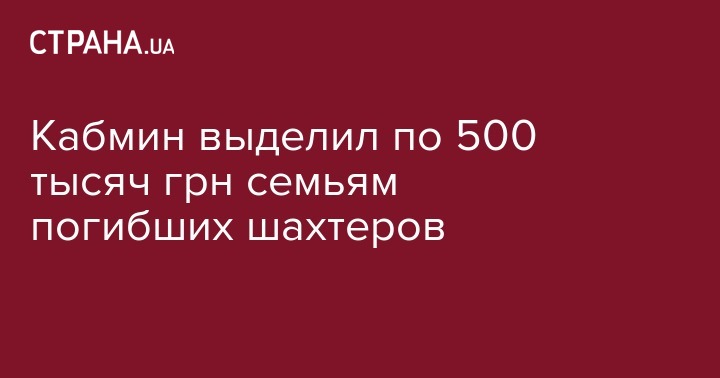 Кабмин выделил по 500 тысяч грн семьям погибших шахтеров и по 75 тысяч пострадавшим. Об этом сообщает "112 Украина".