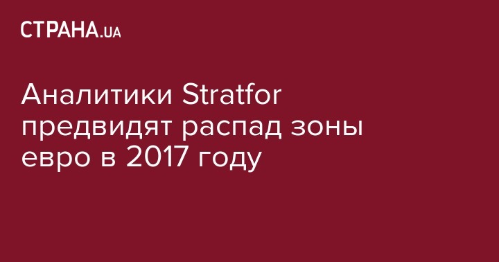 У валюты евро  могут наметиться серьезные проблемы в 2017 году, он станет решающим для еврозоны, которая из-за позиций некоторых стран может распасться. Об этом говорится в отчете экспертов частной американской разведывательно-аналитической компании Stratfor, передает "Апостроф".