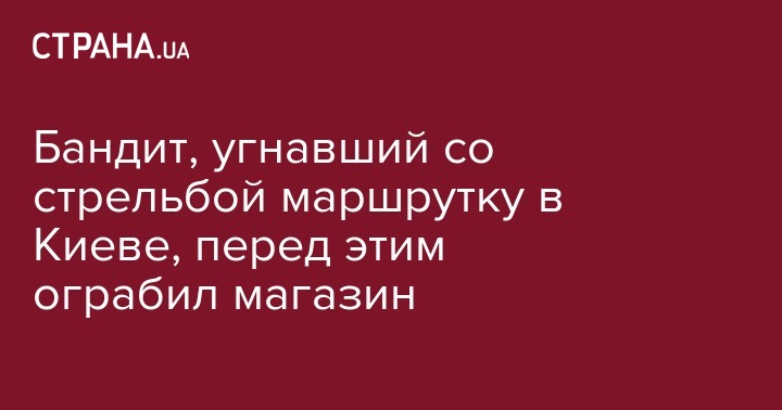 Бандит, угнавший со стрельбой маршрутку в Киеве, перед этим ограбил магазин