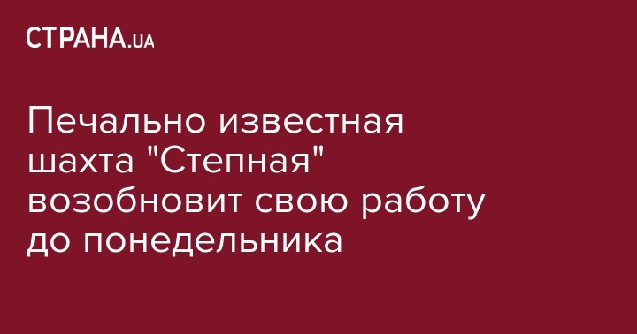 Шахта "Степная" готова возвратиться к добыче угля до понедельника. Об этом сообщает "Интерфакс-Украина". Об этом сообщил председатель Червоноградского отделения Независимого профсоюза горняков Украины Виталий Онижук.