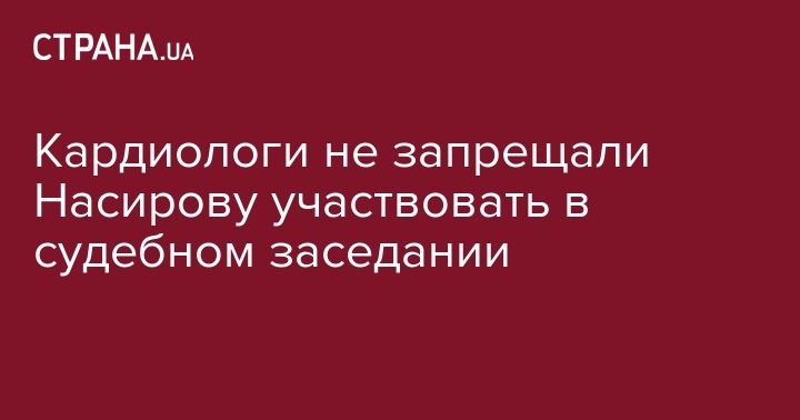Врачи Института кардиологии имени академика Стражеско не запретили отстраненному от должности председателя Государственной фискальной службы Роману Насиров участвовать в судебном заседании. Об этом в ходе заседания Соломенского районного суда Киева об избрании меры пресечения сообщил прокурор САП Роман Симкив, передает УНН.