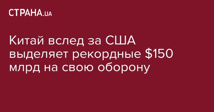 Китай вслед за США выделяет рекордные $150 млрд на свою оборону