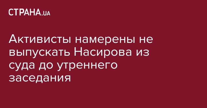 Участники митинга под стенами Соломенского суда заявили, что не выпустят подозреваемого главу ГФС Романа Насирова из помещения до следующего заседания, в 9:30. Об этом сообщает наш корреспондент с места события.
