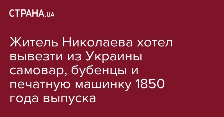 Печатную машинку "Контин", самовар 1850 года выпуска и 6 бубенцов "Виктория", которые, возможно, имеют историческую и культурную ценность, обнаружили 6 марта пограничники Харьковского отряда совместно с работниками таможни, сообщает UBR.