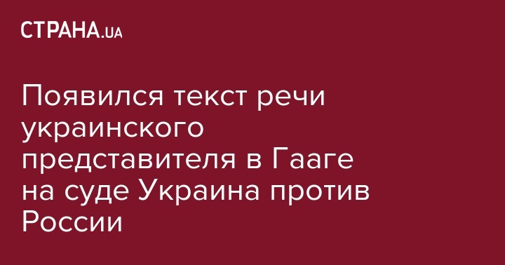 Появился текст речи украинского представителя в Гааге на суде Украина против России