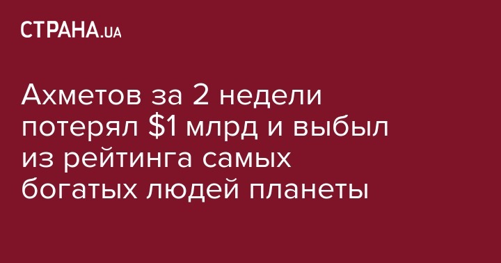 Такое падение привело к тому, что Украина потеряла своего единственного представителя в рейтинге 500 богатейших людей мира: Ахметов на 6 марта занимает 528-ую позицию.