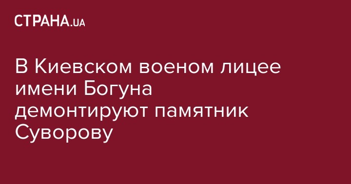 В Киевском военном лицее имени Ивана Богуна (бывшее Суворовское училище) готовятся демонтировать памятник знаменитому русскому полководцу Александру Суворову, который установлен у входа. Об этом сообщают "Вести".