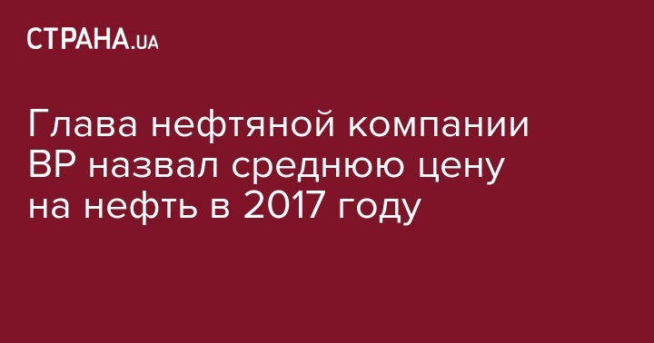 Генеральный директор нефтяной компании BP Роберт Дадли анонсировал среднюю цену на нефть в 2017 году на уровне около $55.