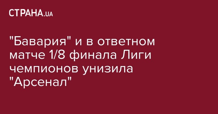 В ответном матче 1/8 финала Лиги чемпионов "Бавария" в Лондоне разгромила "Арсенал". Об этом сообщает пресс-служба УЕФА.