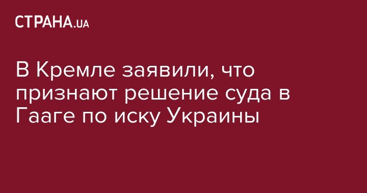 Российская федерация признает решение суда ООН в Гааге по итогам разбирательства по иску Киева в суде, так как Россия - участник данного разбирательства. Об этом заявил пресс-секретарь президента РФ Дмитрий Песков, пишет "Интерфакс".