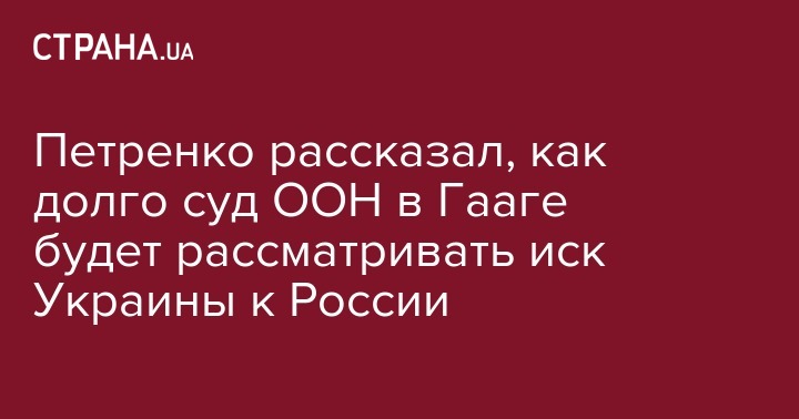 В четверг, 9 марта Министр юстиции Павел Петренко сделал предположение, что рассмотрение иска Украины к России в Международном суде ООН в Гааге может занять около 5-6 лет.