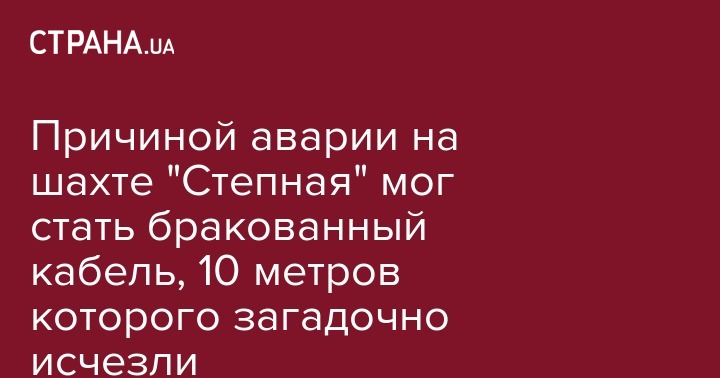 Глава Независимого профсоюза горняков Украины Михаил Волынец в Facebook сообщил, что причиной аварии мог быть кабель, который не соответствовал эксплуатации и 10 метров которого загадочно исчезли.