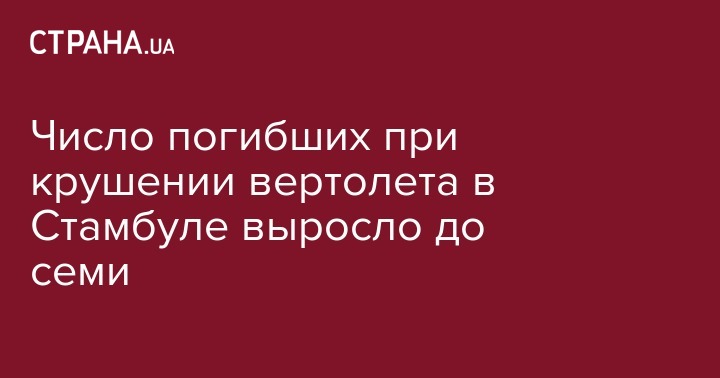 Все семь человек, находившихся на борту упавшего в Стамбуле вертолета, погибли. Об этом заявил мэр Стамбула Кадир Топбаш, передает ТАСС.