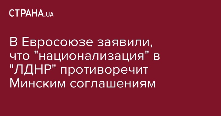 В Евросоюзе заявили, что "национализация" в "ЛДНР" противоречит Минским соглашениям