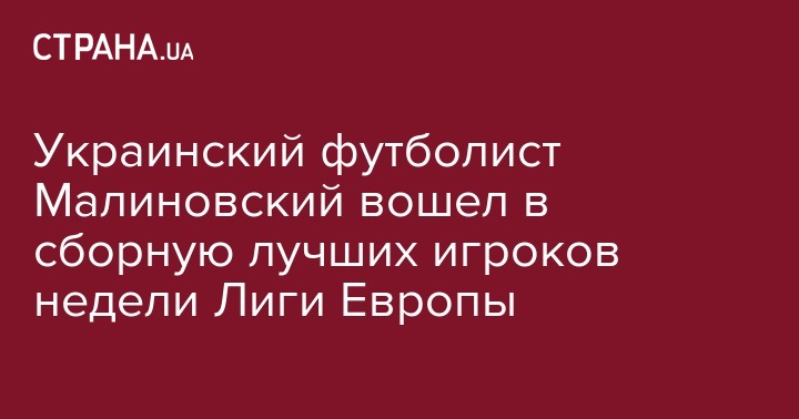 Украинский футболист Малиновский вошел в сборную лучших игроков недели Лиги Европы
