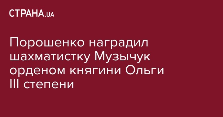 Президент Украины Петр Порошенко присвоил орден княгини Ольги III степени украинской шахматистке Анне Музычук. Об этом написал на своей странице в Facebook.