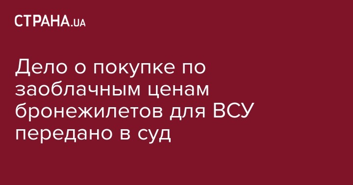 "В Соломенский суд отправлено дело в отношении бывшего руководителя Департамента госзакупок Минобороны Зражевского, который в 2014 году подписал платежки за бронежилеты и шлемы для ВСУ по завышенной стоимости", - написал Луценко.