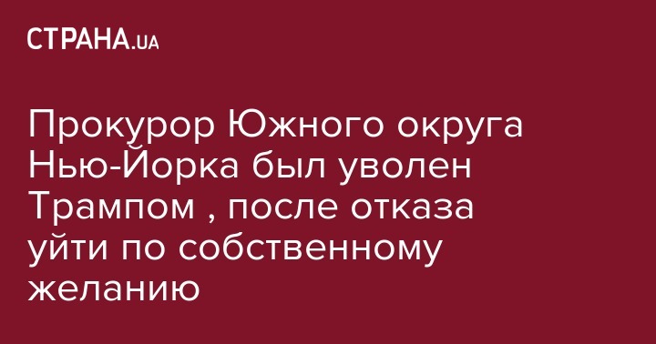 Прокурор Южного округа Нью-Йорка был уволен Трампом , после отказа уйти по собственному желанию