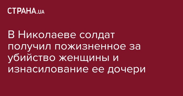 В Николаеве коллегия судей Заводского районного суда признала виновным военнослужащего в убийстве молодой женщины и изнасиловании её малолетней дочери, приговорив мужчину к пожизненному лишению свободы. Как сообщили в пресс-службе прокуратуры Николаевской области, приговор вынесен 9 марта.
