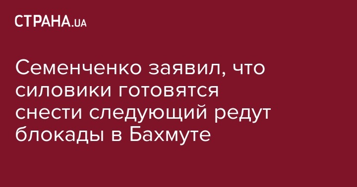 Координатор Штаба торговой блокады Донбасса, народный депутат Семен Семенченко заявил, что силовики готовят разгон нового редута в Бахмуте, Донецкой области. Об этом Семенченко сообщил на своей странице в Facebook.