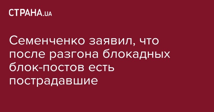 Нардеп Семен Семенченко заявил, что после вчерашнего разгона блокады в Кривом Торце среди ее участников есть пострадавшие. Об этом он написал в Facebook.