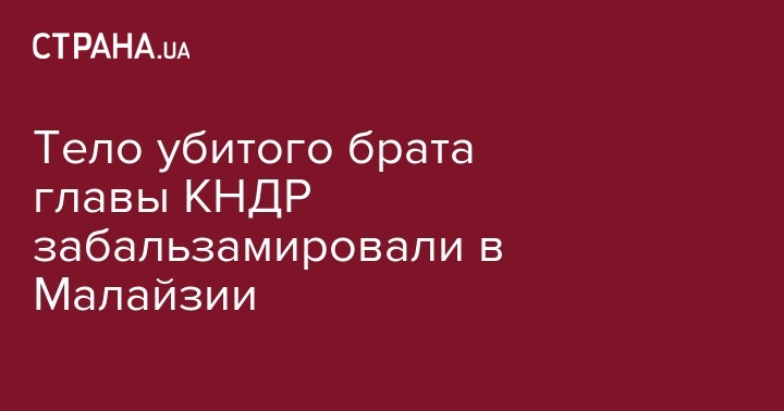 Процедура бальзамирования тела сводного брата лидера КНДР Ким Чон Нама прошла в Малайзии для увеличения времени его сохранности. Об этом пишет Reuters. Бальзамирование прошло в Куала-Лумпуре. Никто из членов семьи покойного не пришел забрать его тело.