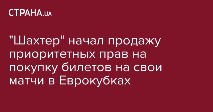 "Шахтер" начал продажу приоритетных прав на покупку билетов на свои матчи в Еврокубках