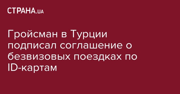 Украина и Турция подписали соглашение о взаимных поездках граждан по ID-картам. Об этом сообщает пресс-служба Кабмина.