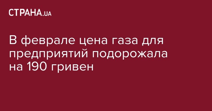 Нацкомиссия госрегулирования энергетики и коммунальных услуг (НКРЭКУ) зафиксировала повышение цен на газ для потребителей (кроме населения) в феврале на 2,1%, или на 190,51 гривен/тыс. куб. м. Об этом сообщают "Украинские Новости".