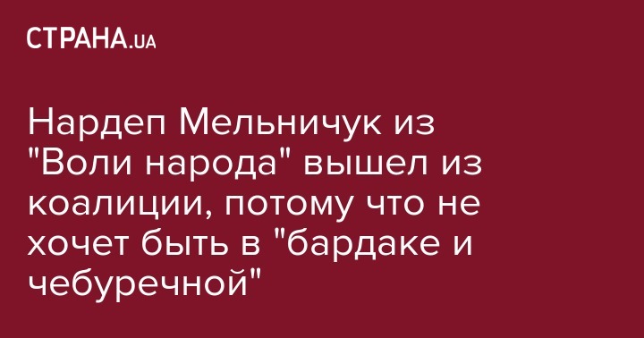 Нардеп Мельничук из "Воли народа" вышел из коалиции, потому что не хочет быть в "бардаке и чебуречной"