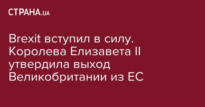 Brexit вступил в силу. Королева Елизавета II утвердила выход Великобритании из ЕС
