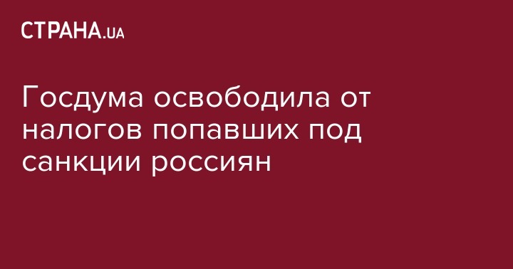 Российская Госдума на заседании в пятницу приняла во втором чтении законопроект, который освобождает от российских налогов физлиц, которые находятся под санкциями, в случае, если они являются налоговыми резидентами иностранного государства. Об этом пишет "Интерфакс".