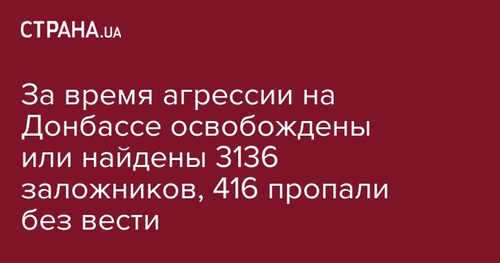 За время агрессии на Донбассе освобождены или найдены 3136 заложников, 416 пропали без вести