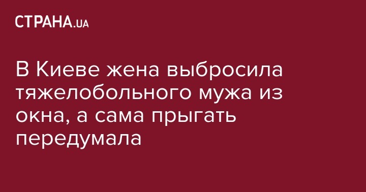 В Киеве женщина выкинула из окна многоэтажки тяжелобольного супруга и хотела свести счеты с жизнью, но не рискнула выпрыгнуть сама. Об этом сообщает пресс-служба полиции Киева.