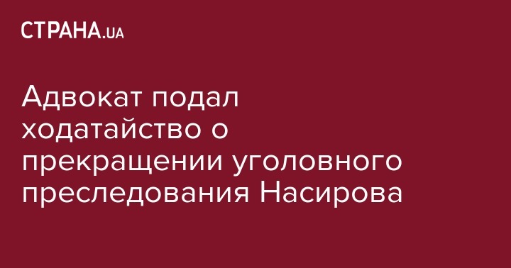 Адвокат отстраненного руководителя ГФС Украины Романа Насирова Виктор Петруненко подал руководителю Специализированной антикоррупционной прокуратуры (САП) Назару Холодницкому и генпрокурору Юрию Луценко ходатайство о прекращении уголовного преследования в отношении своего подзащитного.