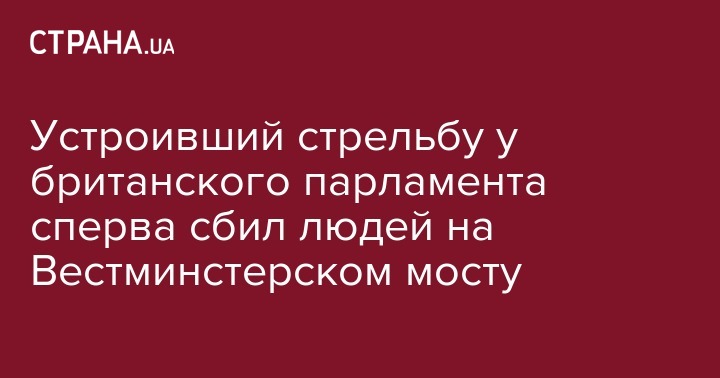 Устроивший, квалифицированную как теракт, перестрелку у здания парламента Великобритании, перед этим, на автомобиле сбил людей на Вестминстерском мосту. Об этом сообщает британский телеканал Sky News со ссылкой на собственные источники.